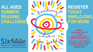 There is also a serious side to summer reading. Research has shown that reading over the summer prevents summer reading loss. Studies also indicate children who read recreationally outperform those who don’t. They also read more when they can choose materials based on their own interests. Six Mile Regional Library District is committed to supporting lifelong learning and educational enrichment for all ages.