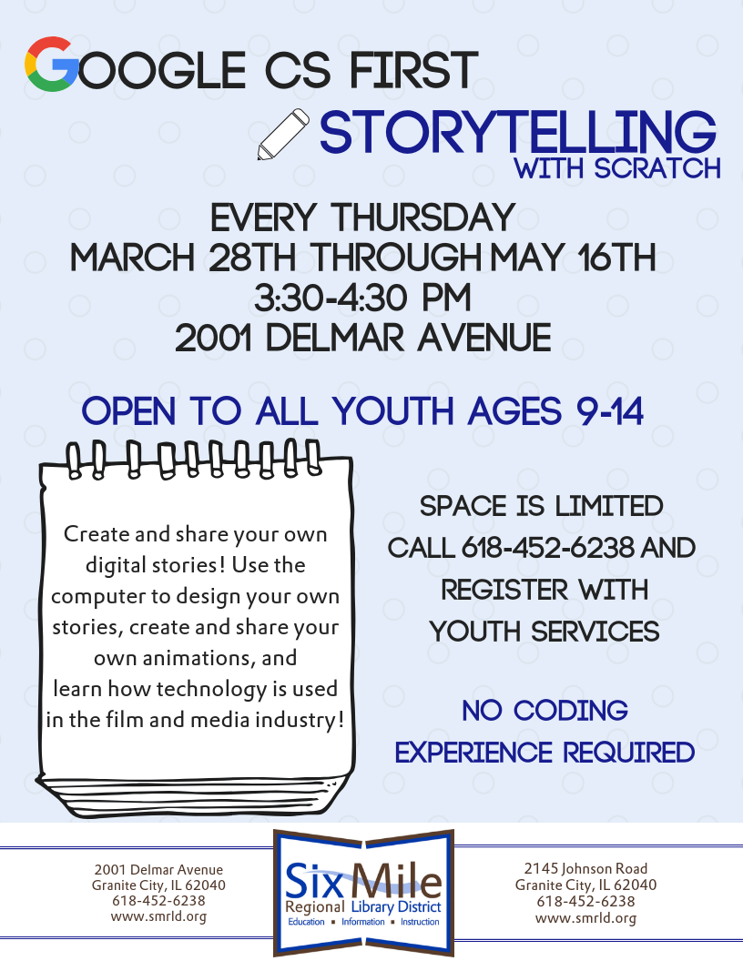 Space is limited; call 452-6238 and speak with Youth Services to register.