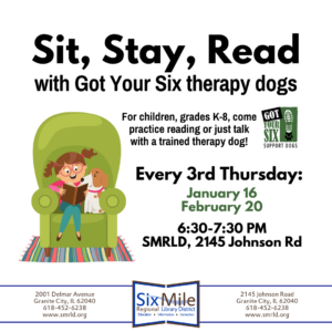 For children, grades K-8, come practice reading or just talk with a trained therapy dog!