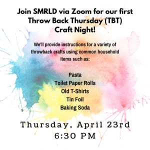 Join us via Zoom for our first Throw Back Thursday Craft Night. We will be using common household items to make family-friendly crafts. You choose what you want to make with the supplies you have on hand.