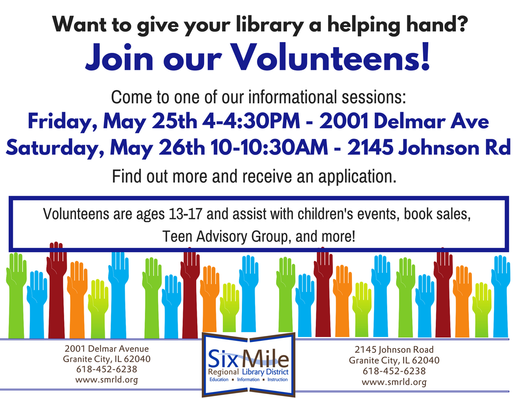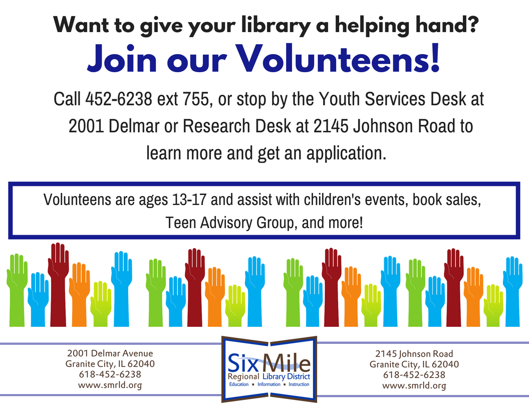 Questions? Email [email protected] or call the Youth Services department at 618-452-6238 ext 720